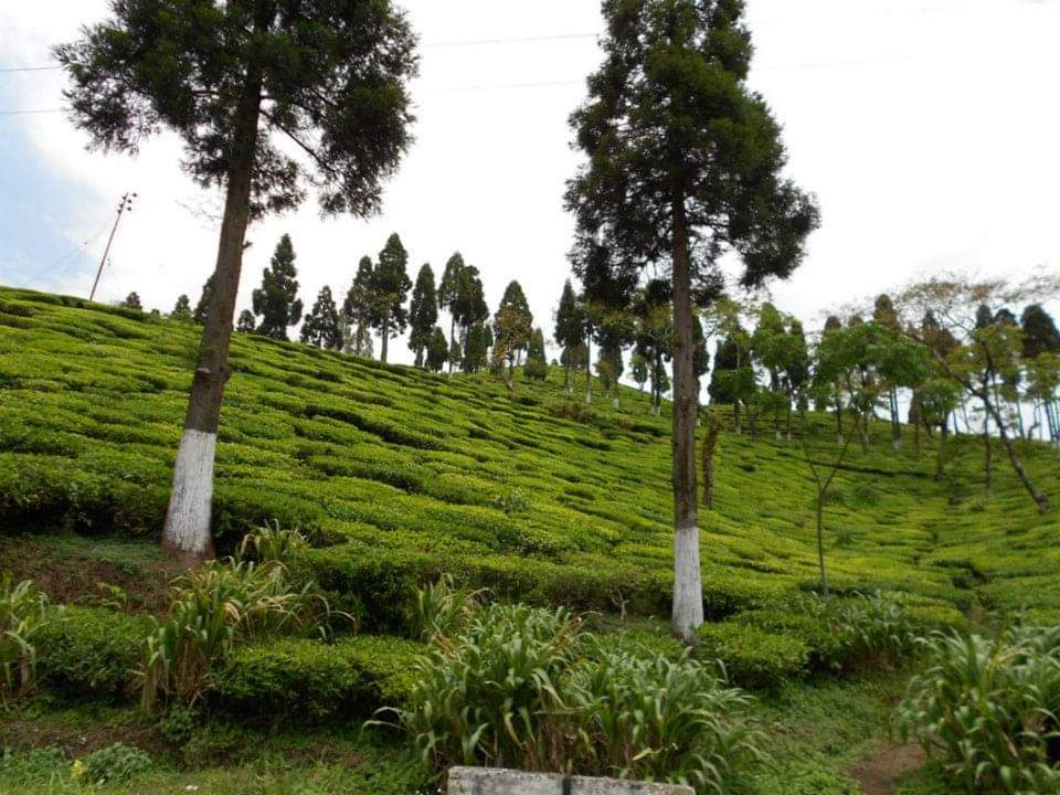 A few minutes later we started our descent further from Simana and soon the trees and forest gave way to large tea estates. The round green hillocks formed by dense tea plantation presented a beautiful landscape. Crossing from one tea mound to another we landed up at Gopaldhara Tea Estate, a shop on the other side of the road looked nice with tea (both cooked and uncooked), snacks and some crockery on offering. Time for another cup of ‘chai’ and a photo stop.