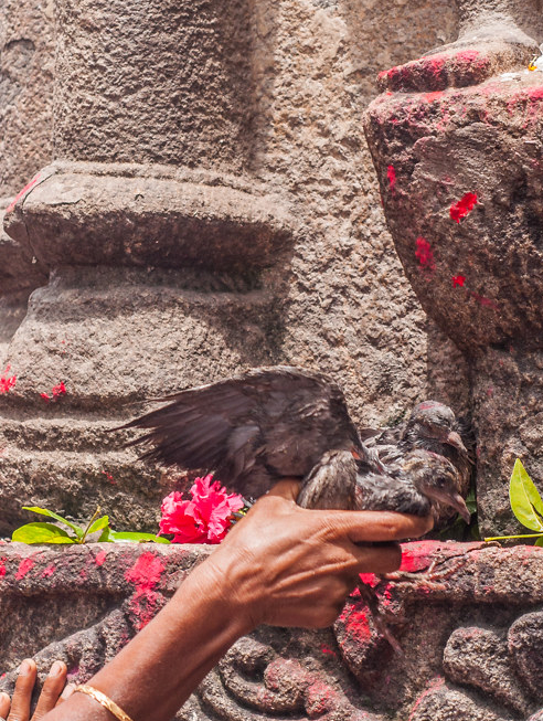 One very interesting practice I saw here was offering pigeons to the goddess. There were many devotees who bought pigeons and placed them on the temple walls after offering their prayers. They were not sacrificed, just left on the walls to fly away.