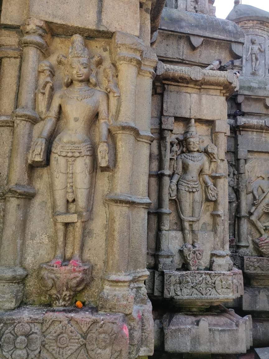 There was a Vimana over the Garbhagriha, which had a sculpture of five chariots. The lower part of the wall consisted of sunken panels with pictures of Ganesha and other Hindu gods sculpted on the panel.