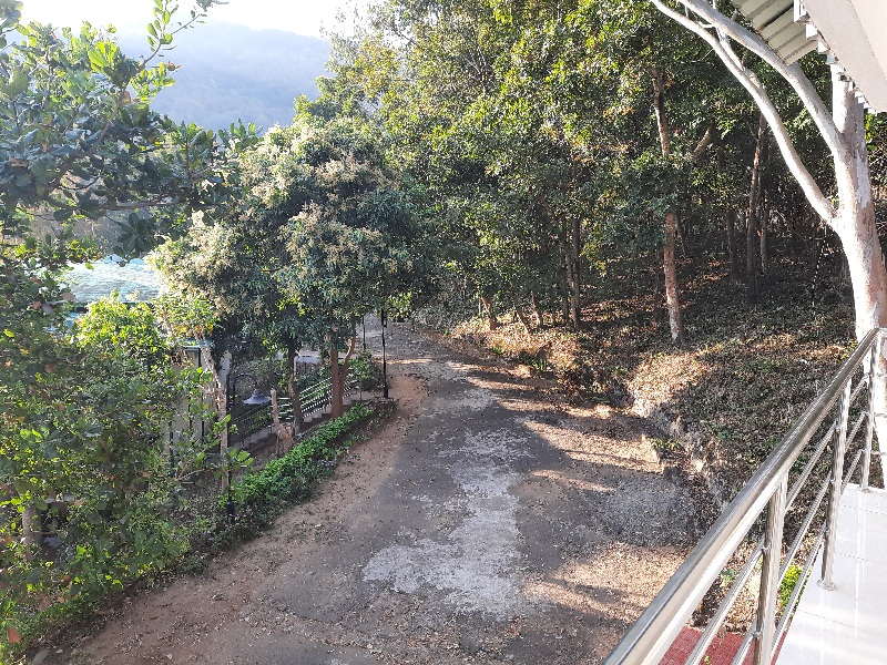 When dawn broke, I went out to explore the place further. The road goes up and down like a meandering wave of the ocean. Party covered in asphalt, it seemed like it’s being used by vehicles as and when needed. The sides are covered with some ornamental plants and flowering shrubs. Tall trees find space on all sides of the property painting the whole area in multiple shades of green.