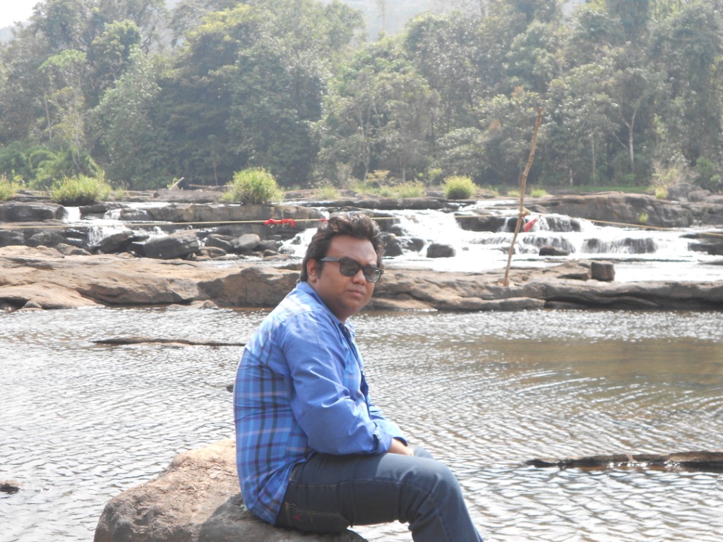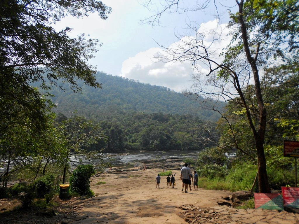 I was standing on a forest clearing, all the trees behind me and scattered rocks in front. The river flowing past huge rocks, making its way towards the inevitable cliff, to drop down as the spellbinding beauty that is the Athirapally waterfall.