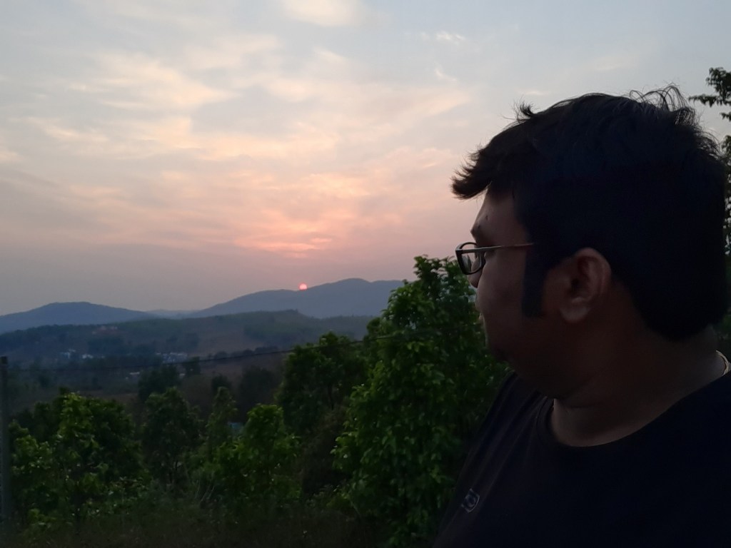 Tired of waiting and fearing low light image won’t do justice to the beauty of the place, I hopped into the spot and threw in a half baked pose, while the couple were busy sorting through their repository of images. Little did I know that the damage was already done. The low light just ensured, a 2022 pic look like one taken in 2004. Technology still has a long way to go. My eyes however was witnessing the beautifully cascading series of hills and valleys, with the sun setting in the west and dark clouds flying from the north. Daringbadi just made a thundering impression.