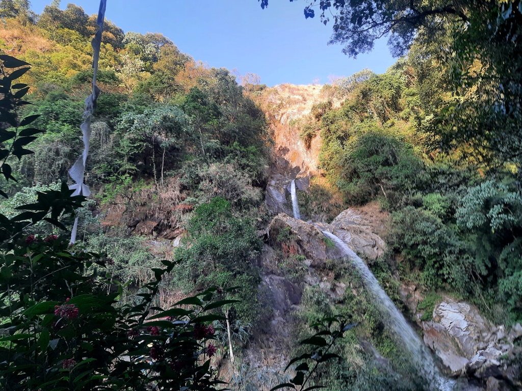 Naga falls is located inside the Mangan district, which is the gateway to North Sikkim. A steel bridge constructed in 2016, is the only connection between both ends of water stream, which is also the only thing connecting the North with rest of the Sikkim.