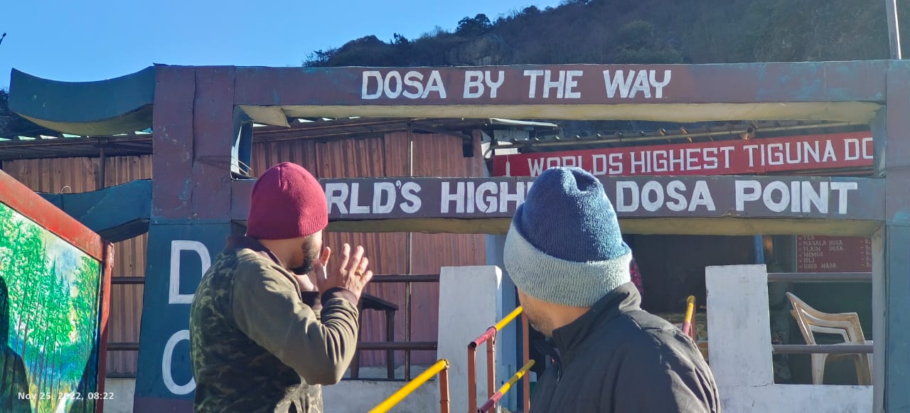 There is a checkpost at Thangu, where all permits for moving further north gets verified. Hence it is mandatory for everyone going to Gurudongmar to make a stop here. Making a stop at Thangu and not having Dosa at the World’s Highest Dosa Point seemed almost criminal, and this is exactly why we planned our breakfast stop here. The dosa point is situated right besides the checkpoint making it extremely convenient for tourists like us to find it.