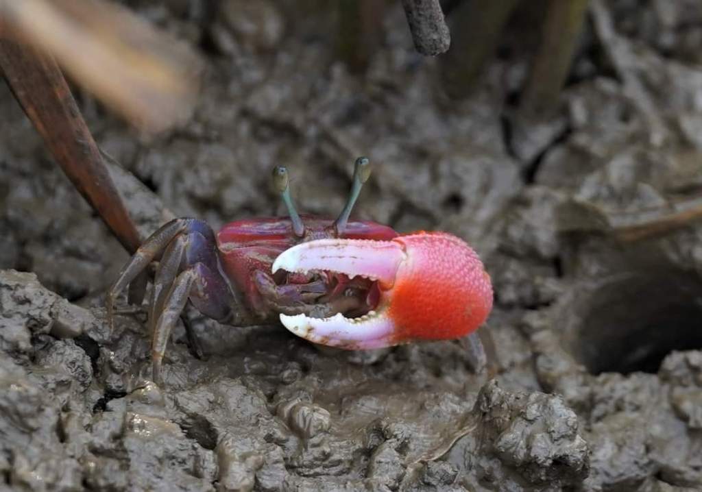 The most fascinating part of this trail were a group of outcroppings, those looked like pikes made of mud. I had no idea what these are, but they just looked amazing. On enquiring with our guide he explained that these are called “breathing roots”, those crop out of horizontal roots of Mangrooves . Usually when the roots of the plant are completely submerged, these roots help in gas exchange. Imagine them to be upside down version of Banyan tree’s root system.