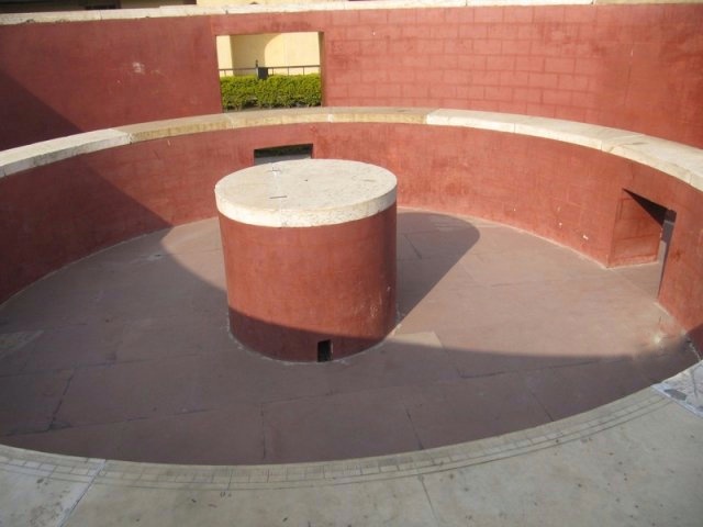 The very first instrument one comes across as soon as they set foot here is a sun dial made of red sand stone and marble. It is triangular in shape and measures the time of the day. It is accurate up to 20 seconds and gives out Jaipur’s local time.