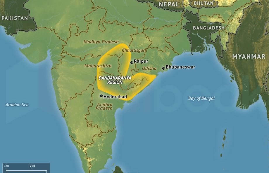 Dandakaranya is a historically and spiritually significant region in east-central India, spanning approximately 92,200 square kilometers across the states of Chhattisgarh, Odisha, Telangana, Maharashtra, and Andhra Pradesh.