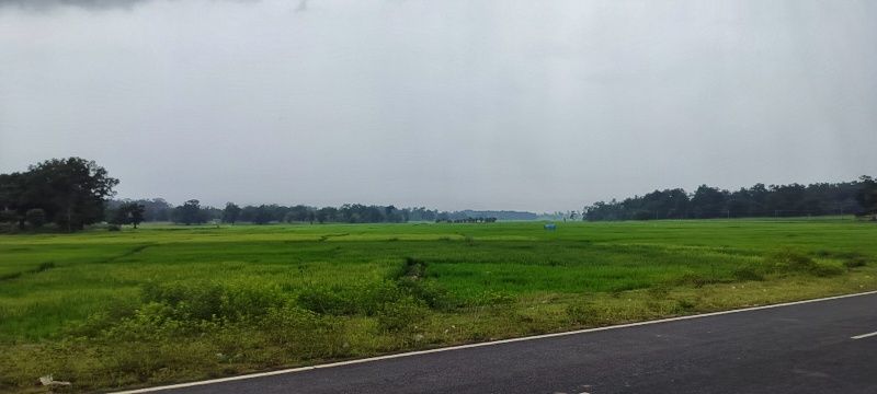 The air was heavy with the scent of damp earth, on either side of the solitary road, stood endless fields of corn and paddy like silent green sentinels. Their tassels waving in the gentle breeze, their rhythm only broken by small patches of forest and water bodies.